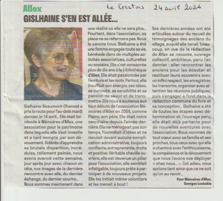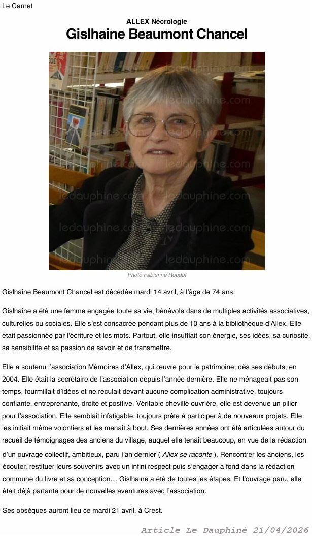 Si certains souhaitent s’exprimer, témoigner, il suffit qu’ils nous contactent : par mail « memoiresdallex@gmail.com », par courrier « Mémoires d’Allex, mairie d’Allex ». Nous les appellerons et prendrons rendez-vous.